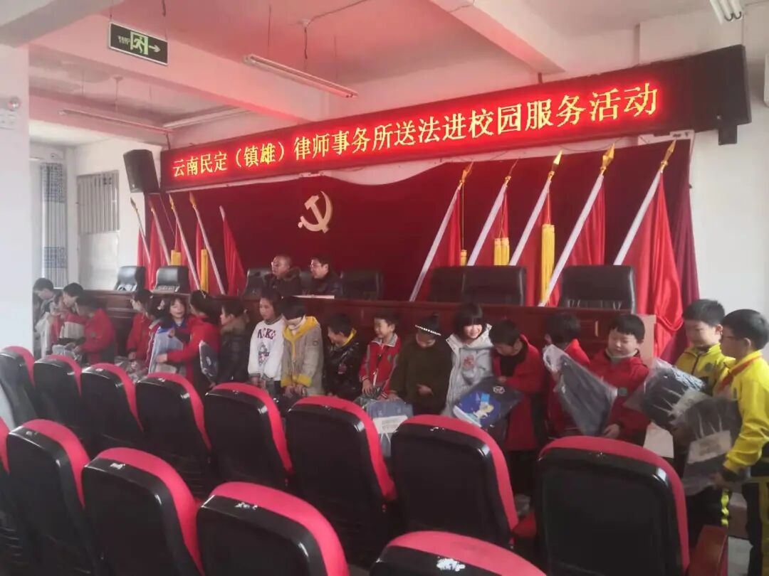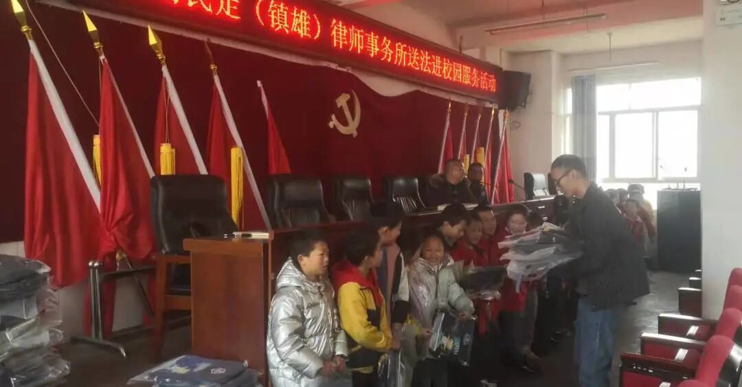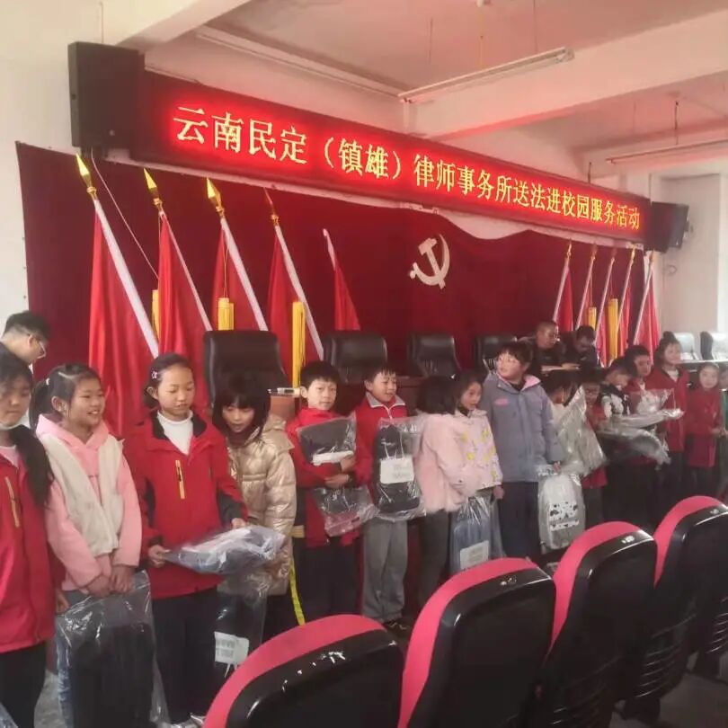 3月2日下午,云南民定(镇雄)律师事务所在塘房镇中心小学党支部的支持帮助下,共同开展“律师送法进校园”及“献爱心帮扶活动”。由律所执行主任李攀发表讲话。李攀指出学生是祖国的未来,学校以及家长等应当围绕学生开展良好的法制教育,帮助学生树立正确的价值观,促使其健康成长。学生自己应当加强自我防卫能力,防止校园欺凌事件的发生。